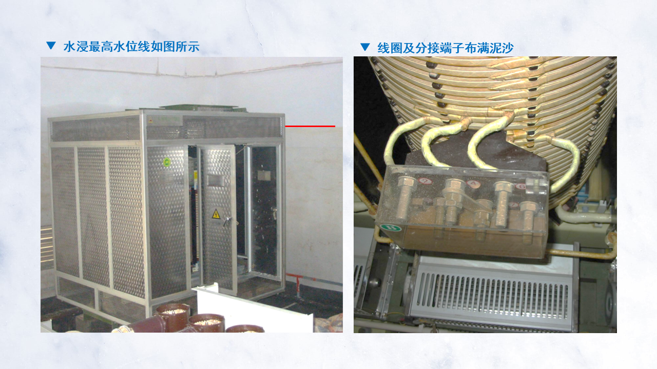 2006年遭受台风“碧利斯”带来的洪水灾害,变压器被洪水浸泡超过48小时,经简单处理后,现场检测各项指标正常,该产品目前依然稳定运行,性能良好。