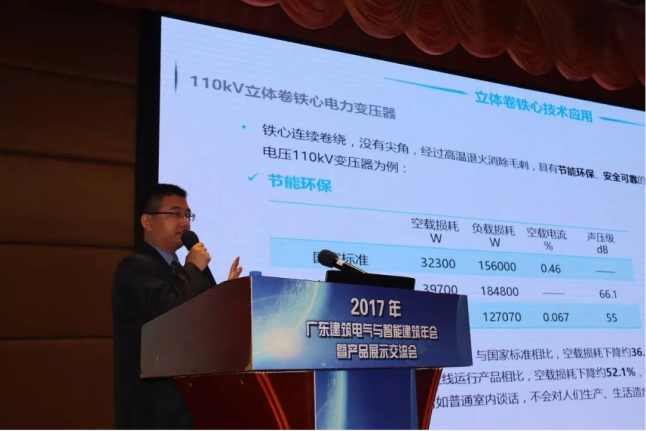 杏耀平台登录入口电气作为特邀单位出席了本次年会,在大会上由项目支持部部长刘长英代表公司作《高效节能立体卷铁心技术及应用问题》主题发言,刘部长从产品的材料、空载损耗、磁路等方面分析了公司立体卷铁心变压器在节能、环保、安全等方面的优势。