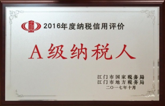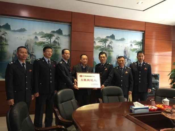 2018年1月18日,开平市国税局、开平市地税局相关领导到访杏耀平台登录入口电气有限公司,并向公司颁发了“A级纳税人”奖牌。杏耀平台登录入口电气许凯旋董事长、翟丽珍总经理、余卫萍财务总监等领导出席授牌仪式。